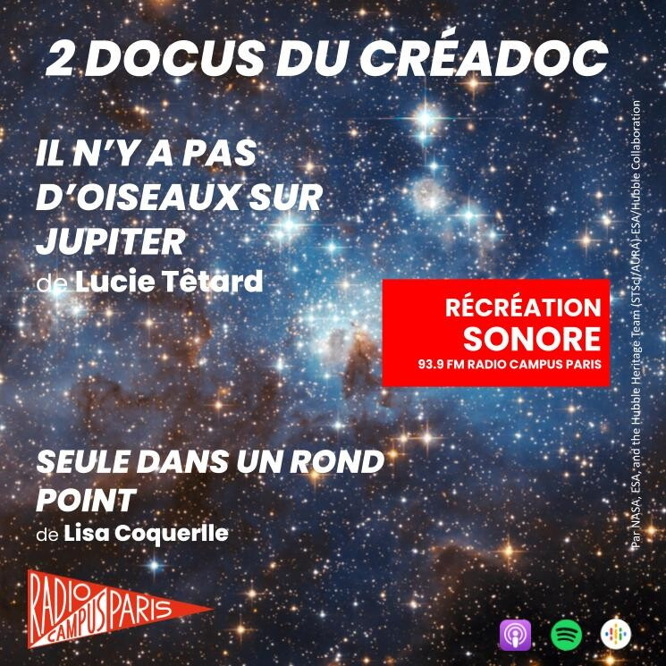 Voici deux documentaires réalisés par des élèves du Crédoc, le Master d’écriture et de réalisation documentaire de l’université de Poitiers, basé à Angoulême, en Nouvelle Aquitaine : Lucie Têtard, Il n’y a pas d’Oiseaux sur Jupiter / Lisa Coquerelle, Toute Seule dans un Rond-point.